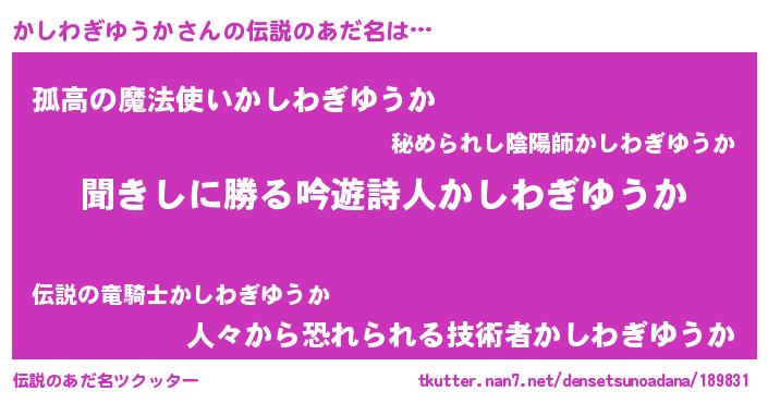 | 意味不明あだ名 | 『永久保存かしわぎゆうか』 |
