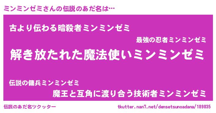 | 意味不明あだ名 | 『とにかく怪しいミンミンゼミ』 |