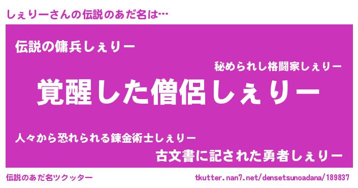 | ヒーロー風カッコイイあだ名 | 『幻影騎士シェ』『スーパーシェリー』 |