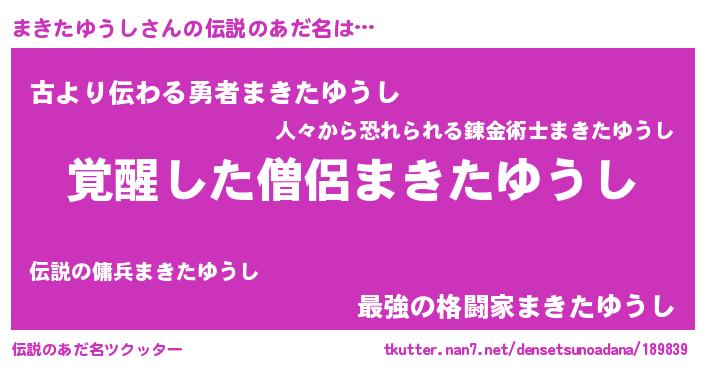 | 男性向けラノベタイトル風あだ名 | 『まきたゆうしの嫁は女の子じゃないと思った?』 |