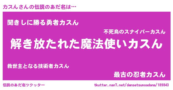 | 意味不明あだ名 | 『とにかく怪しいカスん』『自称カスん』 |