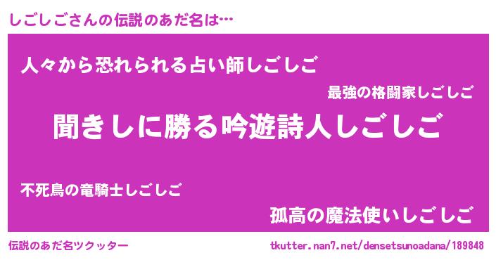 | ファンタジー風あだ名 | 『シゴディッシュ』『クインシット』 |