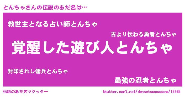 | 男性向けラノベタイトル風あだ名 | 『Re:とんちゃから始める異世界生活』 |