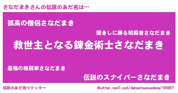 | ヒーロー風カッコイイあだ名 | 『天空の使者さなだまき』『魔戒騎士サナ』 |