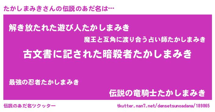 | 意味不明あだ名 | 『永久保存たかしまみき』 |