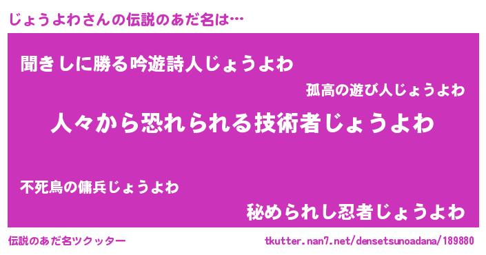 | ヒーロー風カッコイイあだ名 | 『正義の使者じょうよわ』『仮面ジョダー』 |