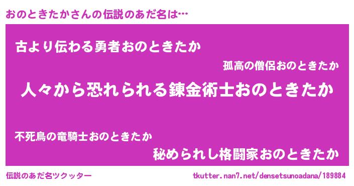 | ヘコむあだ名 | 『おのときたか(遠い目)』『なまこ酢』 |