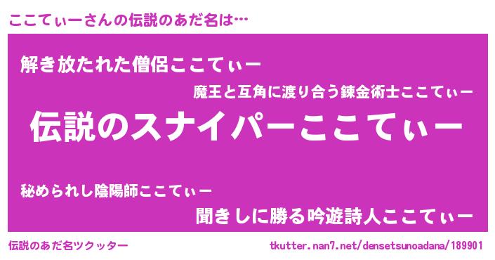 | 意味不明あだ名 | 『住所不定無職ここてぃー(98歳)』 |