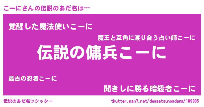 | 男性向けラノベタイトル風あだ名 | 『コーニスレイヤー』『こーにの憂鬱』 |