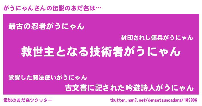 | 欧米人風あだ名 | 『ダニエルがうにゃん』 |