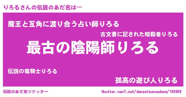 | 男性向けラノベタイトル風あだ名 | 『りろるに滅ぼされるだけの簡単なお仕事です』 |