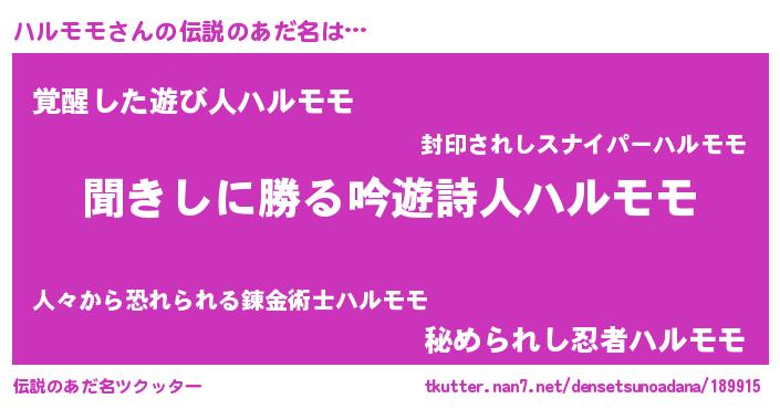 | ポケモン風あだ名 | 『ハルセウス』『メロハッル』 |