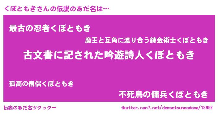 | 意味不明あだ名 | 『永久保存くぼともき』 |