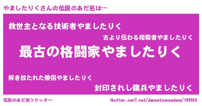 | ファンタジー風あだ名 | 『エターナルヤマシタリクー』 |