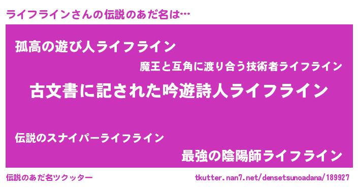 | ヘコむあだ名 | 『ライフライン(笑)』『ライぷりん』 |