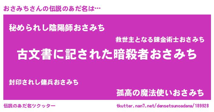 | ヒーロー風カッコイイあだ名 | 『ネオオサミチ』『ウルトラ戦士オサミチ』 |