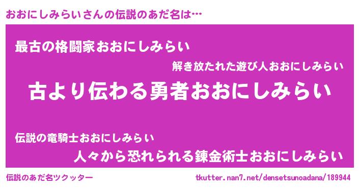 | ヒーロー風カッコイイあだ名 | 『サイバー戦士オオニシミライ』 |