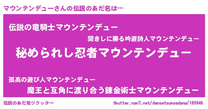 | 男性向けラノベタイトル風あだ名 | 『マウンテンデュースレイヤー』 |