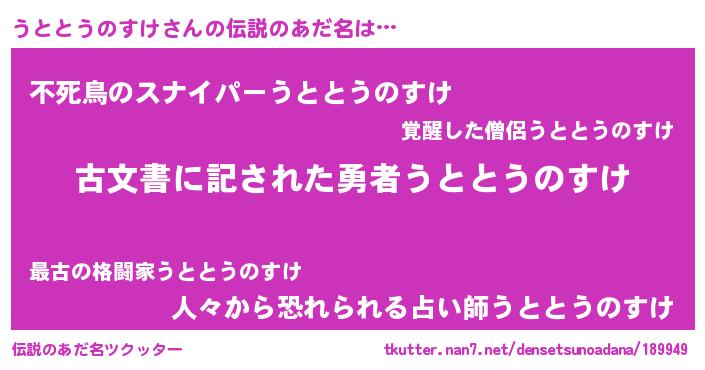 | 意味不明あだ名 | 『永久保存うととうのすけ』 |