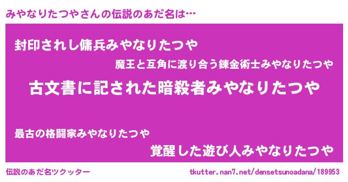 | 意味不明あだ名 | 『永久保存みやなりたつや』 |