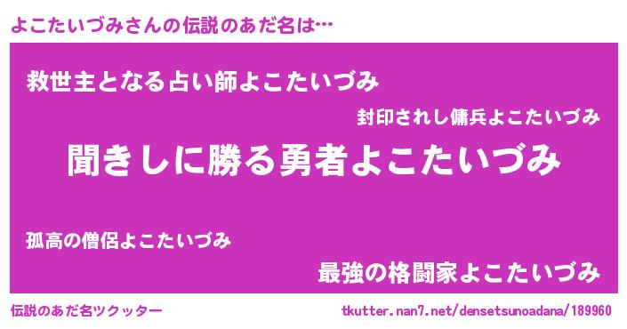 | 意味不明あだ名 | 『自称よこたいづみ』 |