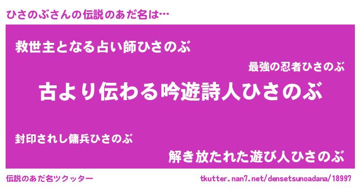 | 女子向けラノベタイトル風あだ名 | 『ひさのぶの契約王妃』『闇のひさのぶ』 |
