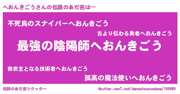 | ファンタジー風あだ名 | 『エターナルヘオンキゴウー』 |