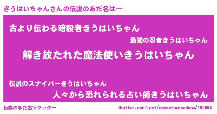 | 意味不明あだ名 | 『自称きうはいちゃん』 |