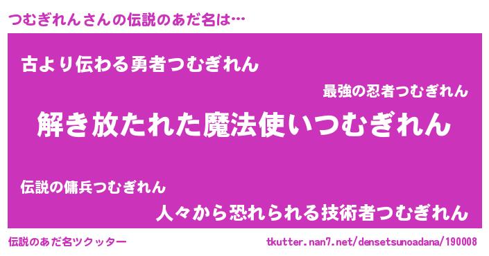 | ヒーロー風カッコイイあだ名 | 『サイバー戦士ツムギレン』 |