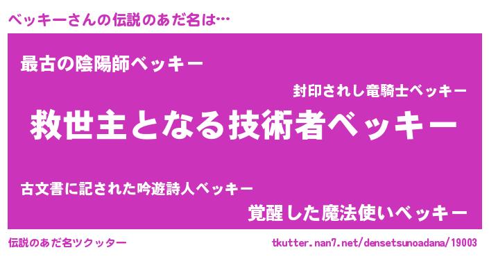 | 女子向けラノベタイトル風あだ名 | 『死神ベッキーの再婚』 |