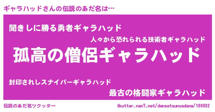 | 意味不明あだ名 | 『とにかく怪しいギャラハッド』 |