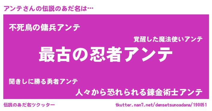 | 意味不明あだ名 | 『たけのこ科アンテ属』『自称アンテ』 |