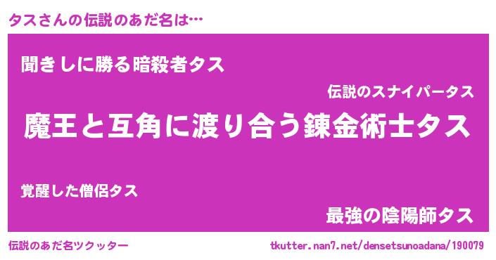 | 意味不明あだ名 | 『住所不定無職タス(98歳)』『永久保存タス』 |