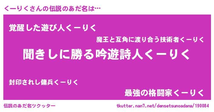 | 意味不明あだ名 | 『永久保存くーりく』 |
