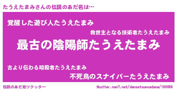 | ヒーロー風カッコイイあだ名 | 『仮面タウダー』『究極戦士タウエタマミ』 |