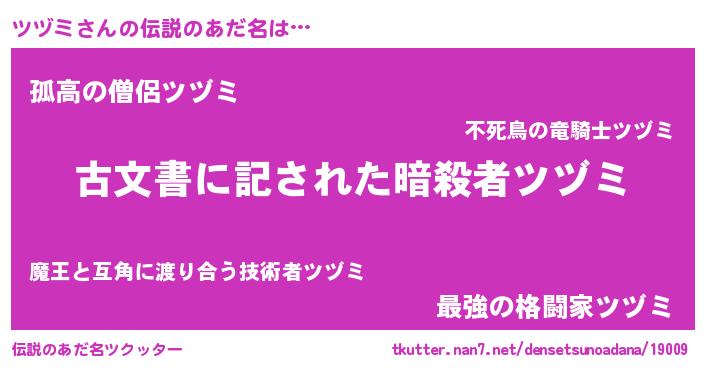 | ヒーロー風カッコイイあだ名 | 『仮面ツヅダー』『サイバー戦士ツヅミ』 |