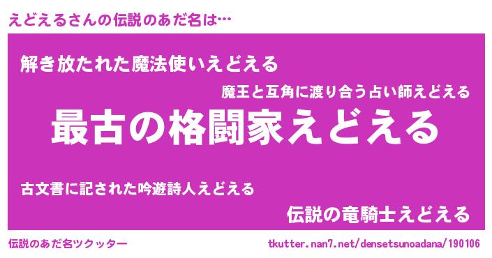 | 意味不明あだ名 | 『自称えどえる』『えどえるフォーエバー』 |