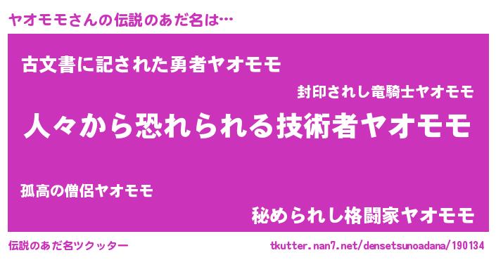 | 男性向けラノベタイトル風あだ名 | 『ヤオモモスレイヤー』 |