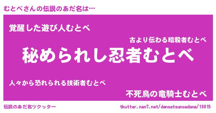 | ヒーロー風カッコイイあだ名 | 『ウルトラむとべマン』『天弓騎士ムト』 |