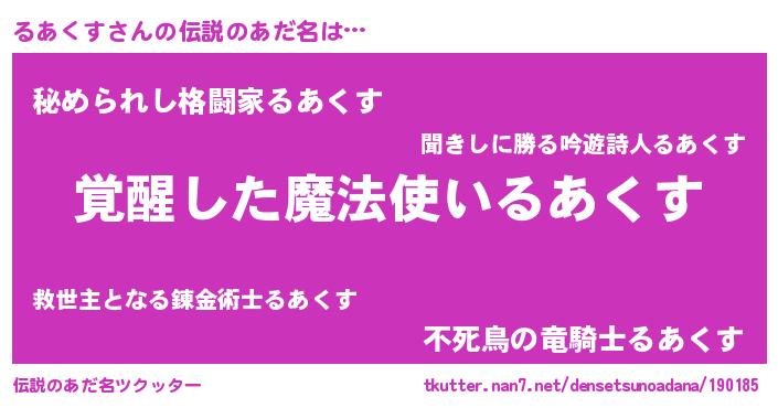 | 男性向けラノベタイトル風あだ名 | 『るあくすの嫁は女の子じゃないと思った?』 |