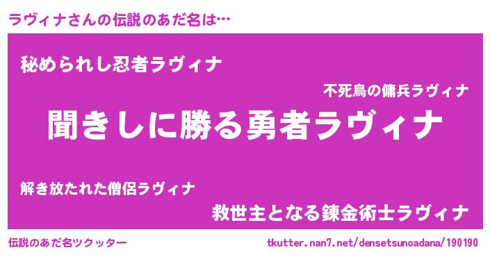 | 意味不明あだ名 | 『自称ラヴィナ』『永久保存ラヴィナ』 |