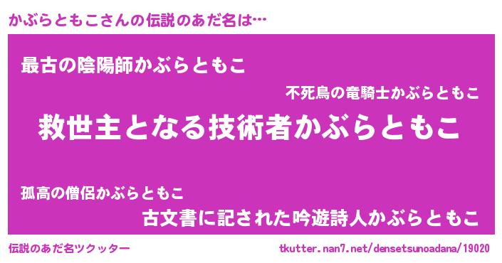 | ヒーロー風カッコイイあだ名 | 『天空の使者かぶらともこ』 |