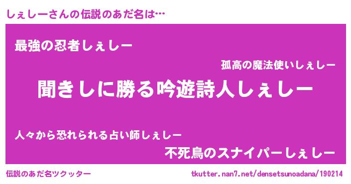| 意味不明あだ名 | 『自称しぇしー』『永久保存しぇしー』 |