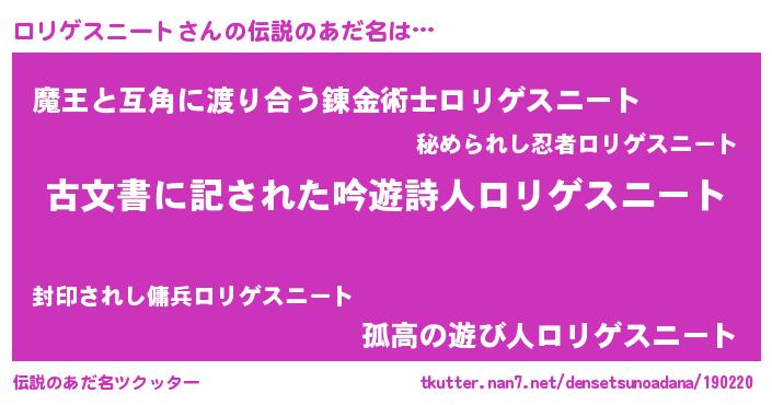 | ヒーロー風カッコイイあだ名 | 『ネオロリゲスニート』『仮面ロリダー』 |