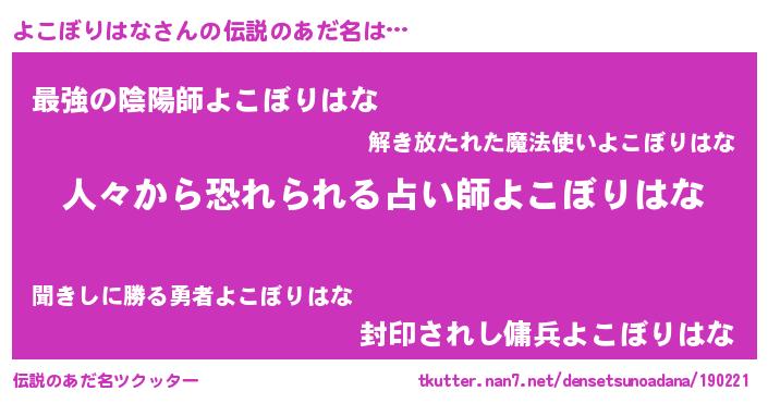 | ヒーロー風カッコイイあだ名 | 『友情の使者よこぼりはな』 |