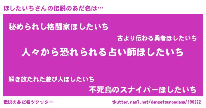 | 意味不明あだ名 | 『住所不定無職ほしたいち(59歳)』 |