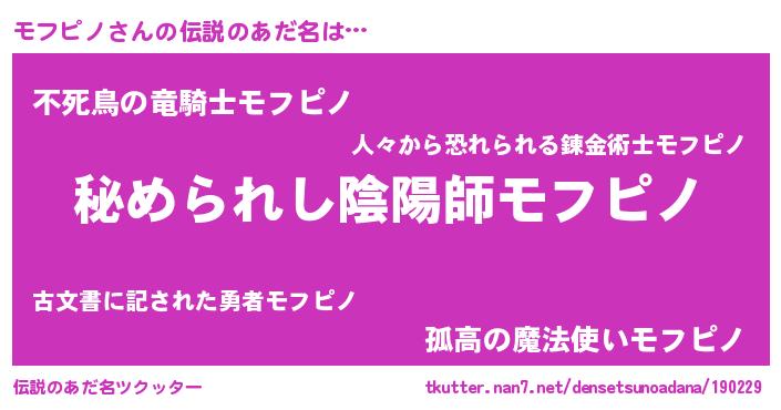 | ポケモン風あだ名 | 『モフゴンZ』『モフピダネ』 |