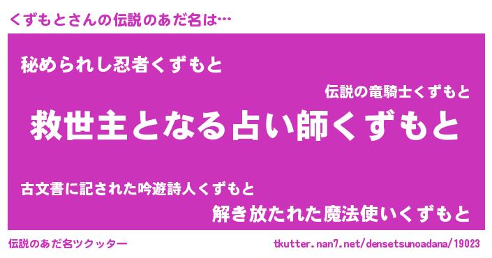 | ヒーロー風カッコイイあだ名 | 『天空の使者くずもと』『天弓騎士クズ』 |