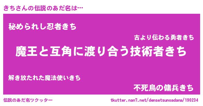 | ファンタジー風あだ名 | 『クインキット』『カークキチラー』 |