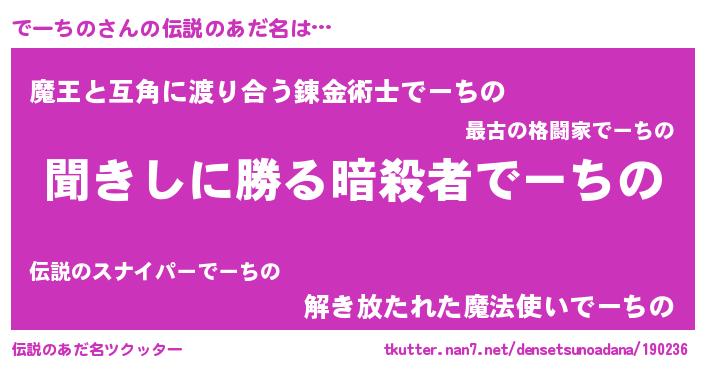 | 意味不明あだ名 | 『永久保存でーちの』『自称でーちの』 |